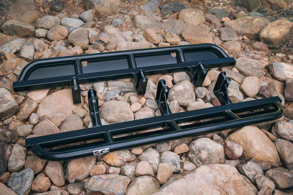 The Rock Slider's bottom is made of a smooth 5 mm thick steel plate that is welded on to offer the utmost protection against severe impacts with rocks and banks. Additionally, it offers a greater flat surface area to lessen snags when sliding over uneven terrain.